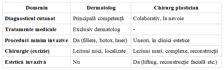 Cum colaborează medicul dermatolog cu chirurgul de chirurgie plastică, care este granița care separă competențele acestor două specialități?