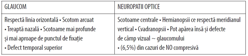 - în neuropatia optică glaucomatoasă, acuitatea vizuală este păstrată până în stadii avansate;