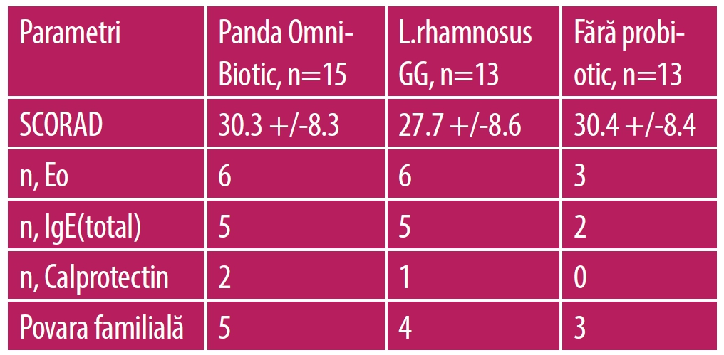 Tabelul 2. Rezultatele sumare ale unui studiu clinic de 6 luni privind eficacitatea probioticelor la pacienții cu dermatită edematoasă